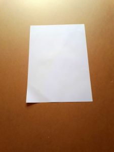 Schritt 1: Zunächst müssen wir einen kleinen Hut falten. Dafür legt ihr das Stück Papier vor euch auf den Tisch.
