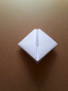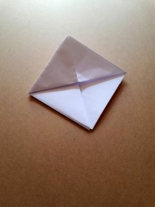 Schritt 8: Dreht das Papier den Rücken. Ihr seht die kleinen überstehenden Ecken.