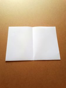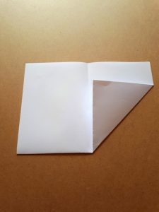 Schritt 2: Faltet das Papier in der Mitte. Die Fläche ist nun halbiert.