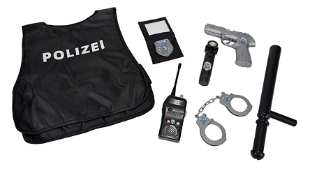 Das Polizei-Set für Kinder besteht aus insgesamt 7 Teilen. Mit von der Partie sind: